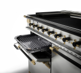 Milovníci grilovaných jedál ocenia samostatný Deluxe Glide-out gril, ktorý sa plynulo vysúva a je vybavený nastaviteľnou 4-polohovou mriežkou (trivet). Tento systém umožňuje presné nastavenie vzdialenosti od zdroja tepla, čím dosiahnete perfektné prepečenie podľa vašich preferencií.