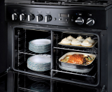 V srdci sporáku Professonal+FX je zabudovaný unikátny systém ESP ( Energy Saving Panel), tento systém vám umožňuje vybrať si medzi celkovým objemom rúry (108 l) alebo zmenšeným objemom rúry (49 l). Deliaci panel zníži spotrebu energie pri príprave menších jedál. Deliaci panel a rošty sa dajú uskladniť v dolnej zásuvke.Funkcie